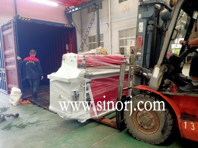 發往南美的lvt地板生產線spc地板設備裝柜中